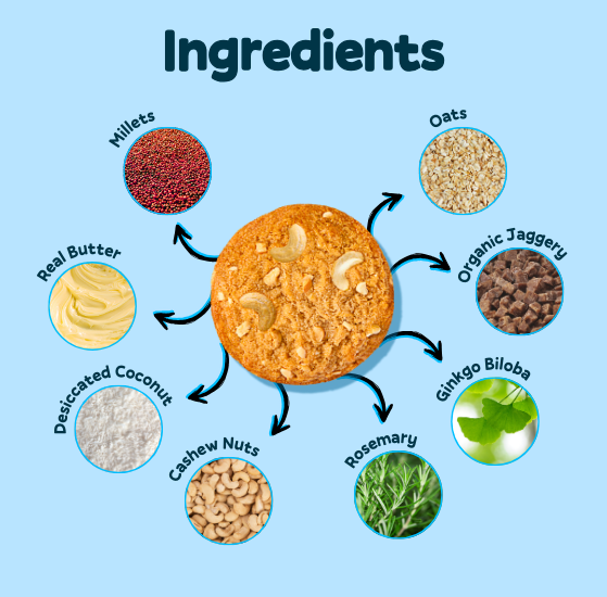 We believe in using ingredients that are bettr for your health. That’s why our cookies are made with millets and oats instead of maida or atta. These grains are naturally gluten-free and offer more nutrients, making our cookies a wholesome and satisfying choice.